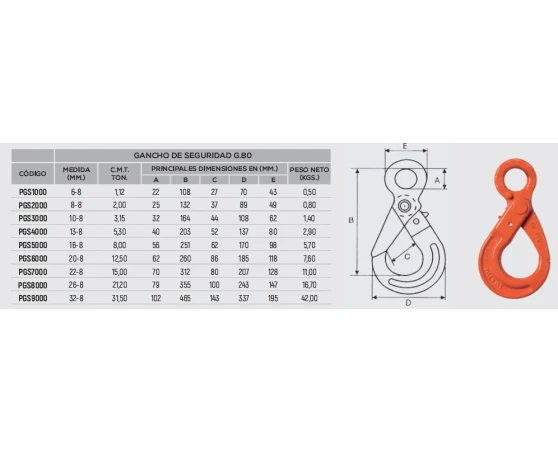 Gancho de seguridad grado 80 en diferentes medidas